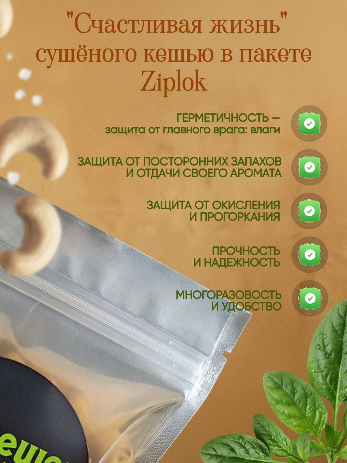 Прочный дой-пак надёжно защитит продукт от влаги и света, сохранив качество даже при длительном хранении.